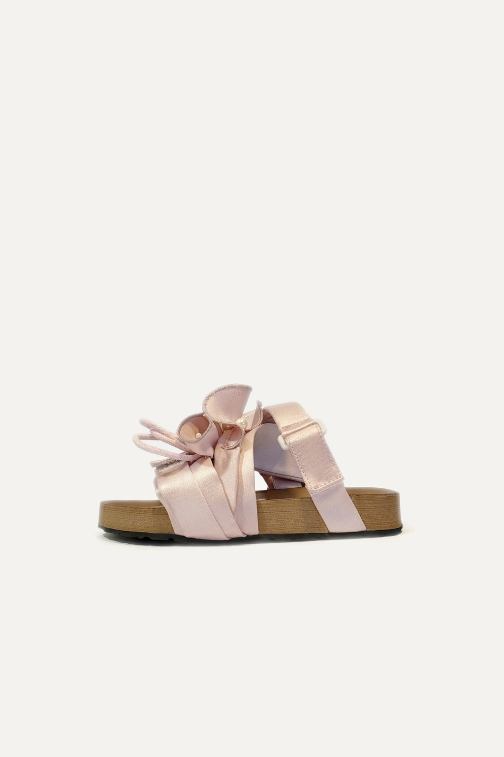 Multi straps and double fasteners mini sandals with pearl and embroidery details